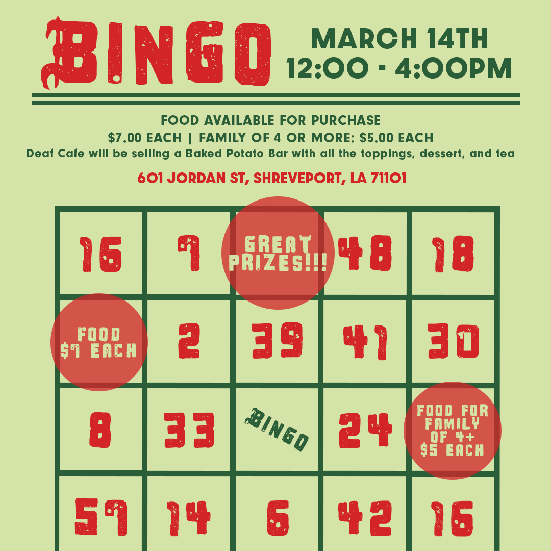 We have 26 parking spots available in the Center’s parking lot. Parking reservations are available to Deaf, DeafBlind, and Hard of Hearing individuals. Interpreters, CODAs, and family members are welcome to ride with a Deaf community member. Contact Cheyenne Bryant at cheyenne@deafactioncenter.org or VP 318-217-4110 to reserve your spot! ...