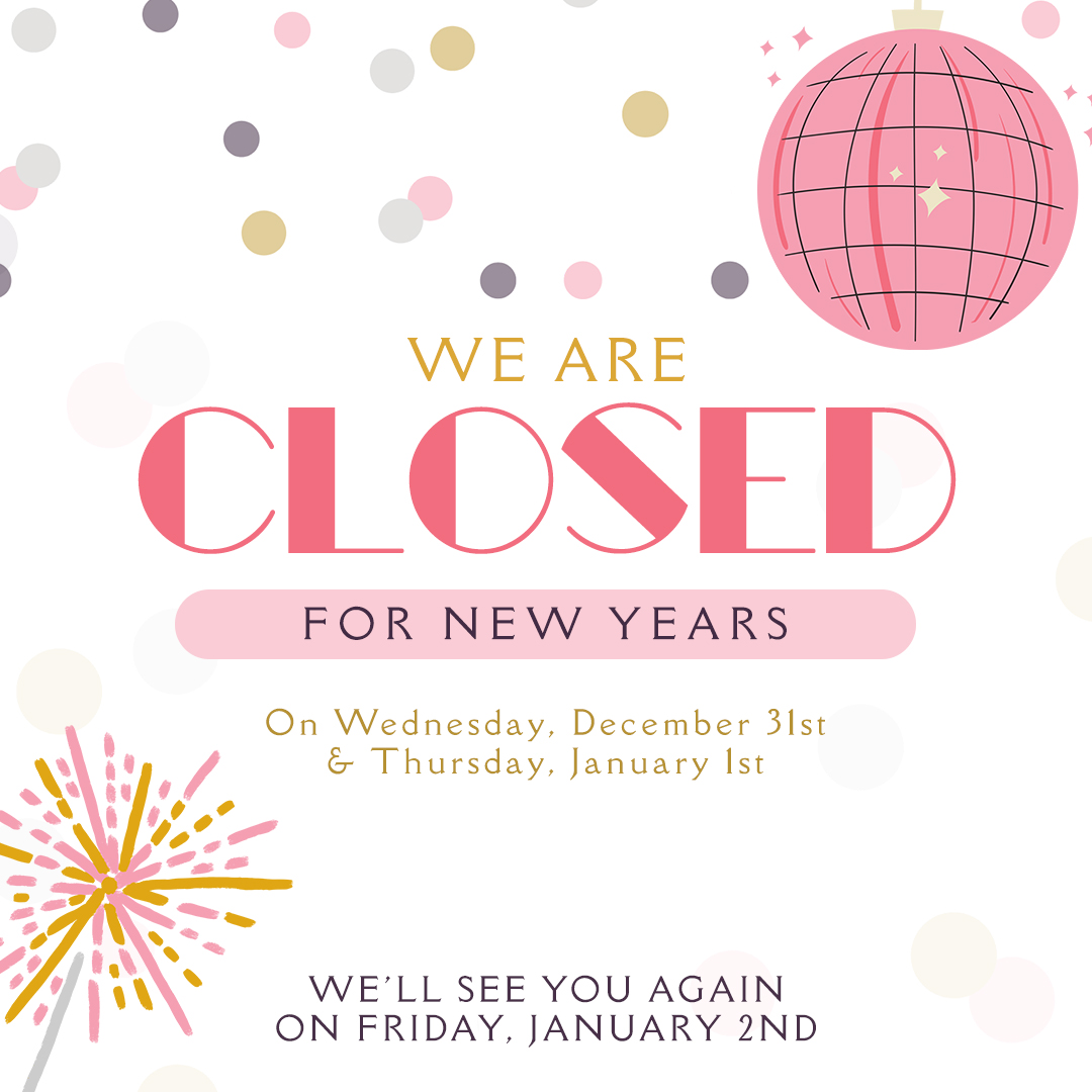 Happy New Year, everyone! Just a quick heads up, we'll be closed Wednesday, December 31st and Thursday, January 1st to ring in the new year with our families. We'll be back and ready to serve you on Friday, January 2nd. Wishing you all a safe and joyful holiday!
